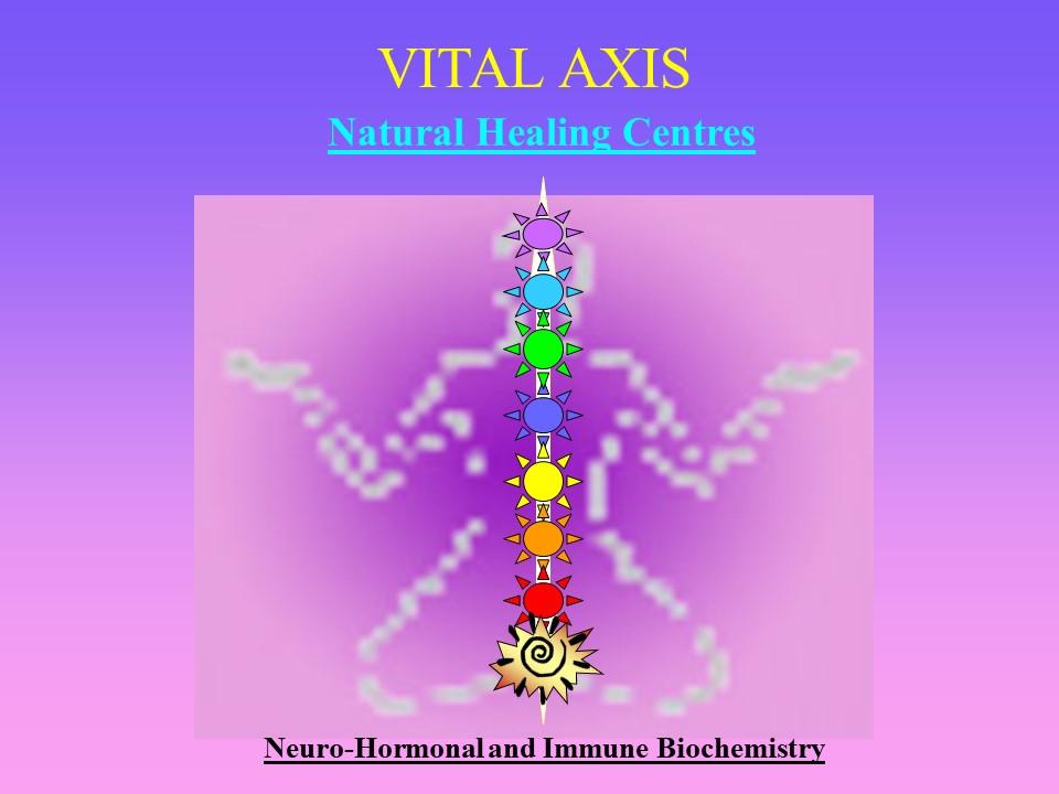 We apparently have an immense reservoir of natural healing energy lying dormant along our Vital Axis which extends from the top of the skull to the tip of the spine. This metaphysical zone is a part of Cosmic Master Plan and has a series of Healing Centers called the Chakras which are like spinning spheres of energy. These charkas correspond to major hormonal glands & nerve plexus of our anatomical framework. Their activation has profound effects not only on our metabolism, but also on our DNA coding & intracellular makeup.